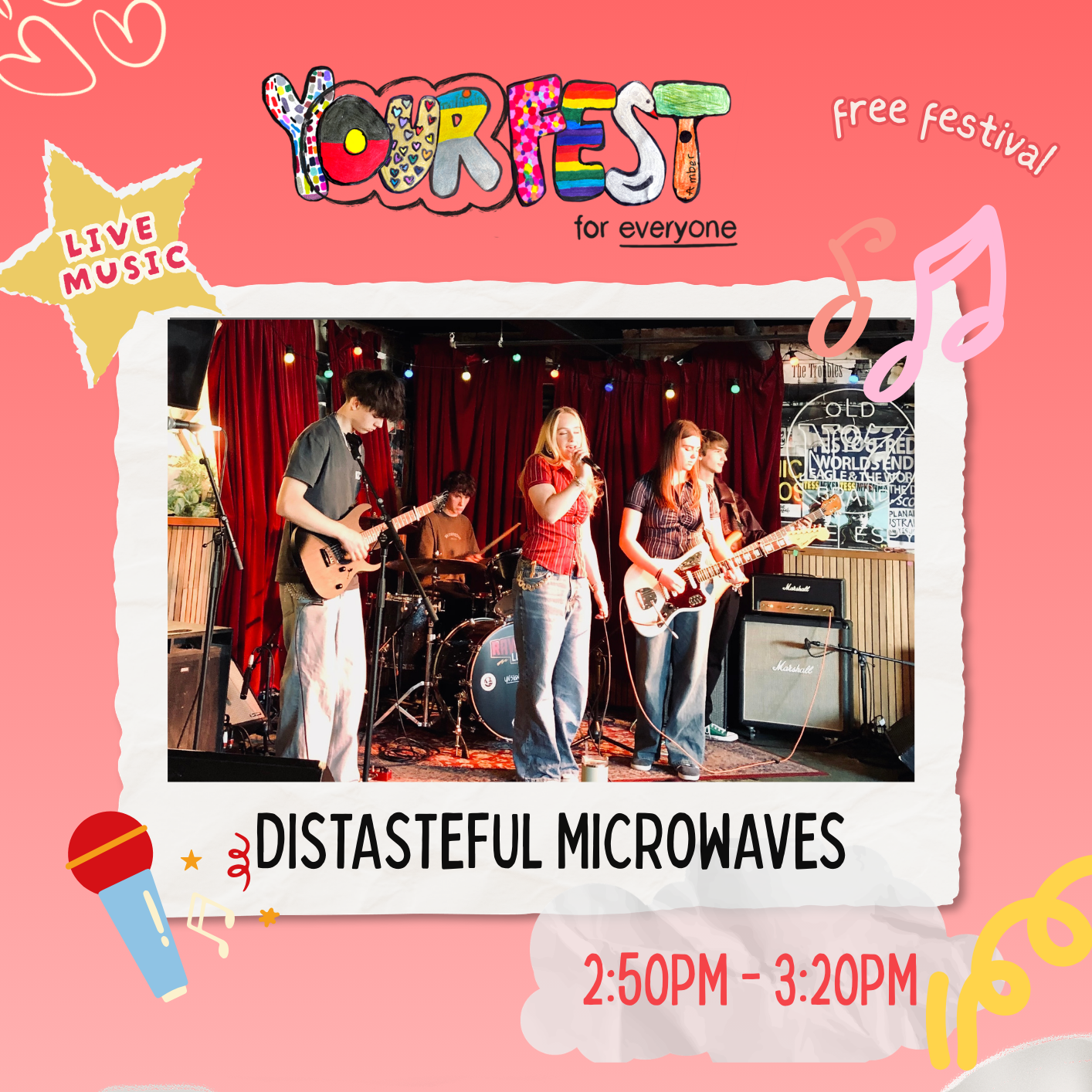 Distasteful Microwaves are a young indie rock band from Port Phillip, Melbourne. Mixing emotional ballads with loud, guitar driven tracks, their music shifts from quiet reflection to high energy moments that get a crowd moving.